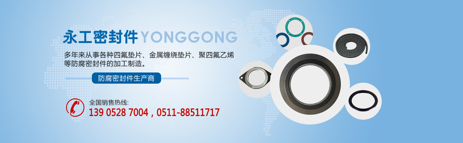 江蘇省揚(yáng)中市永工密封件有限公司,位于美麗富饒的長(zhǎng)江三角洲中,氣候宜人,交通方便,是一家專業(yè)生產(chǎn)四氟墊片金屬纏繞墊片聚四氟乙烯等防腐密封件的企業(yè)。